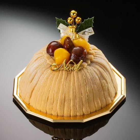愛媛県産国産栗を使用したクリームと国産栗の甘露煮をたっぷりと純生クリームでサンドした栗のクリスマスケーキです。